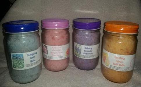 We make our bath salts with salts extracted from the Himalayan mountains and the Dead Sea, along with Epson salts. These salts are rich in minerals such as magnesium, calcium, and potassium. They are much more beneficial in aiding detoxification. Essential oils are added to make the salts even better. Use one to two tbsp per bath. These salts come in a reusable 12oz glass jar with a color tin lid. Salts 12oz glass jar Price $10.00 Energizing Bath Salts are made with peppermint, rosemary and eucalyptus. Great to use during flu season to kill germs, or if you have any nausea problems then you need this bath salt around.